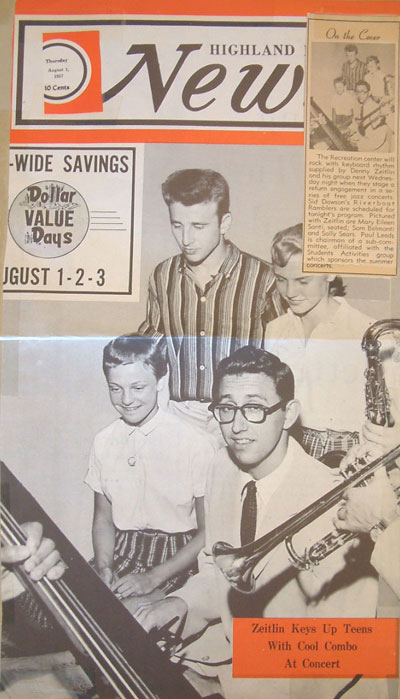 Cover, Highland Park News, ’57. While a sophmore in college, Denny gives a concert in his Chicago suburb home town.