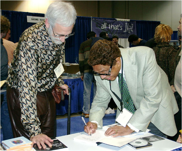 With Billy Taylor, autographing his book, International Association of Jazz Educators Convention, '05 (photo: Jim Eigo)